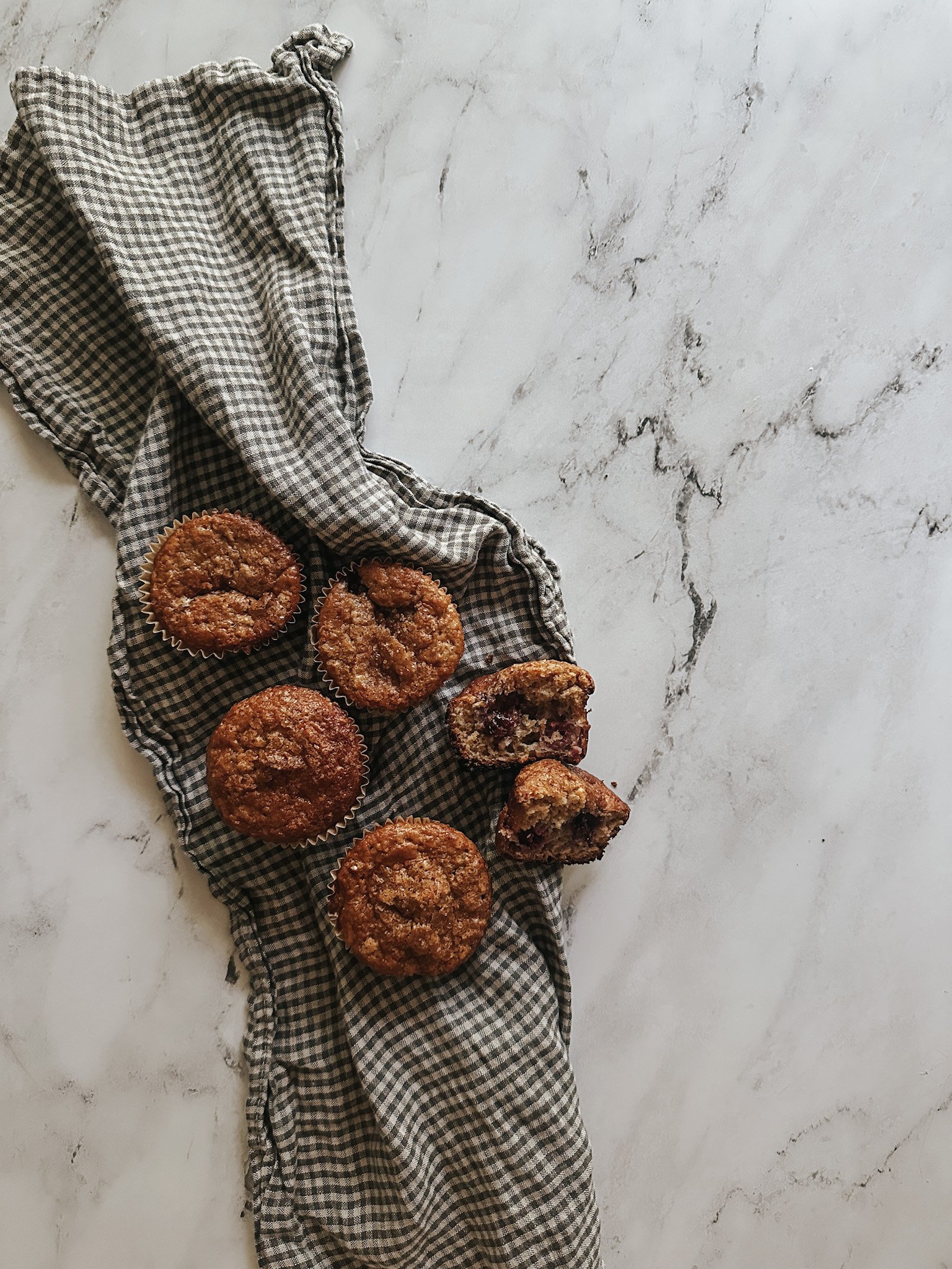 A batch of muffins never lasts long in our house. It’s a perfectly acceptable snack in my eyes with a nice tall glass of whole milk. It’s an equally wonderful addition to our reading times in the morning or afternoon, especially when they’re split and toasted with a swipe of butter before serving. The “soaking” part of the recipe is not necessary, but serves two purposes. First, the soaking makes for a delightfully tender muffin by taking the tough edge off the rolled oats. Secondly, the soaking makes the whole shebang more nutritious by reducing anti-nutrients found in whole grains that can bind to minerals when we eat them. Meaning we can’t absorb and utilize them! By no means do I only feed my family soaked grains, but this feels like a simple step in the process to increase the nutrition of a baked good! It’s up to you, but I urge you to try it both ways! Also, feel free to change up the fruit additions to suit your family’s tastes.