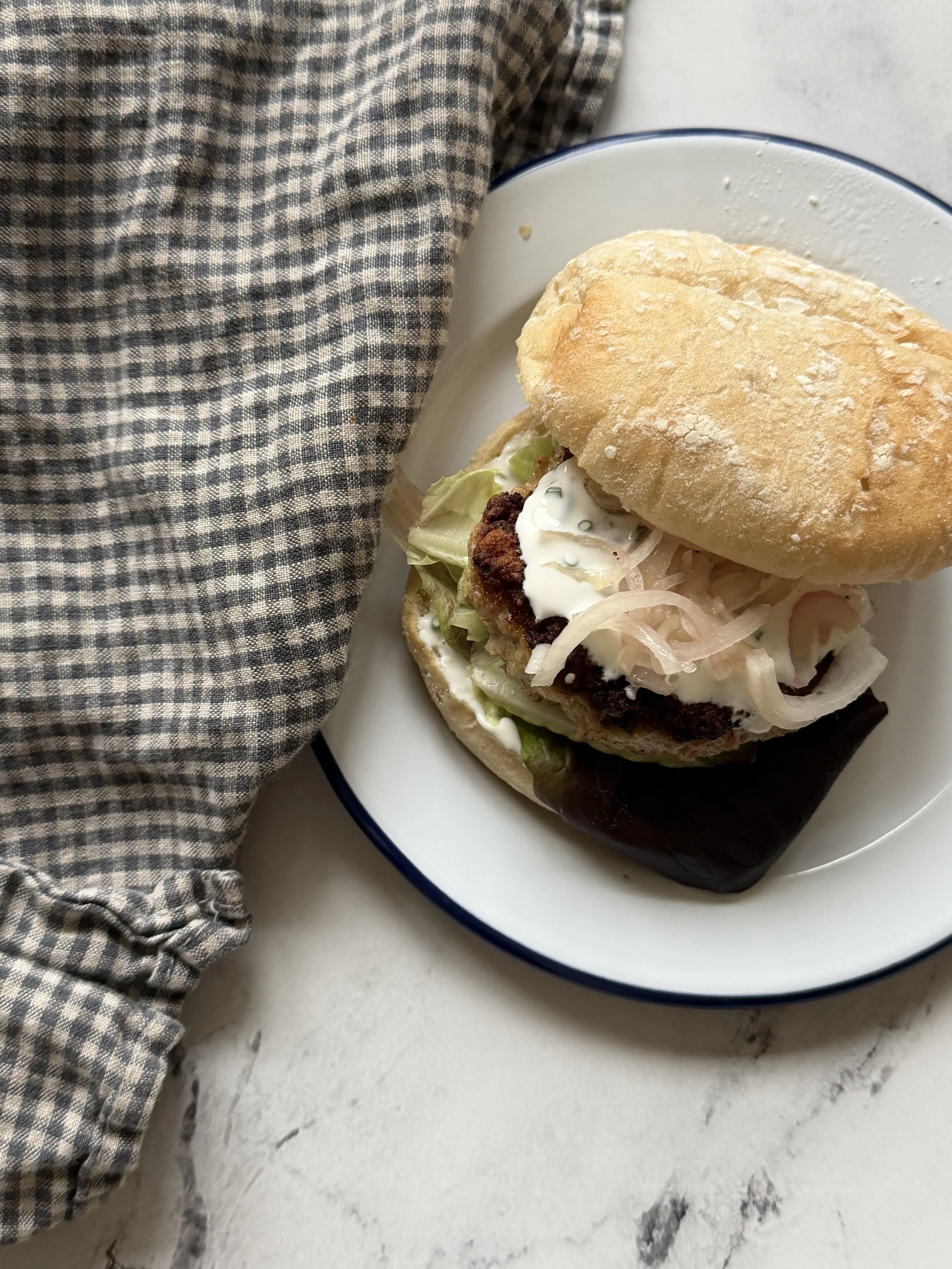 Every culture has variations on similar meal “formulas” as I like to call them. A+B+C = a delicious, balanced meal. In every culture, there’s a version of ground meat squished together, seasoned, and seared before being lovingly placed in a carby blanket. The All-American burger is one example of this. I love a good old fashioned beef burger with all the fixin's, but I love even more switching it up and playing with the proteins and flavors used. My favorite little tip for stretching expensive protein in our house is to use ground meat and mix it with shredded apple or another fruit/veg. Turkey pairs so well with the slight sweetness of apple and the herbs throughout give it such a springy taste! It’s enough to make you feel ok about the the blossoms not quite arriving yet ;)